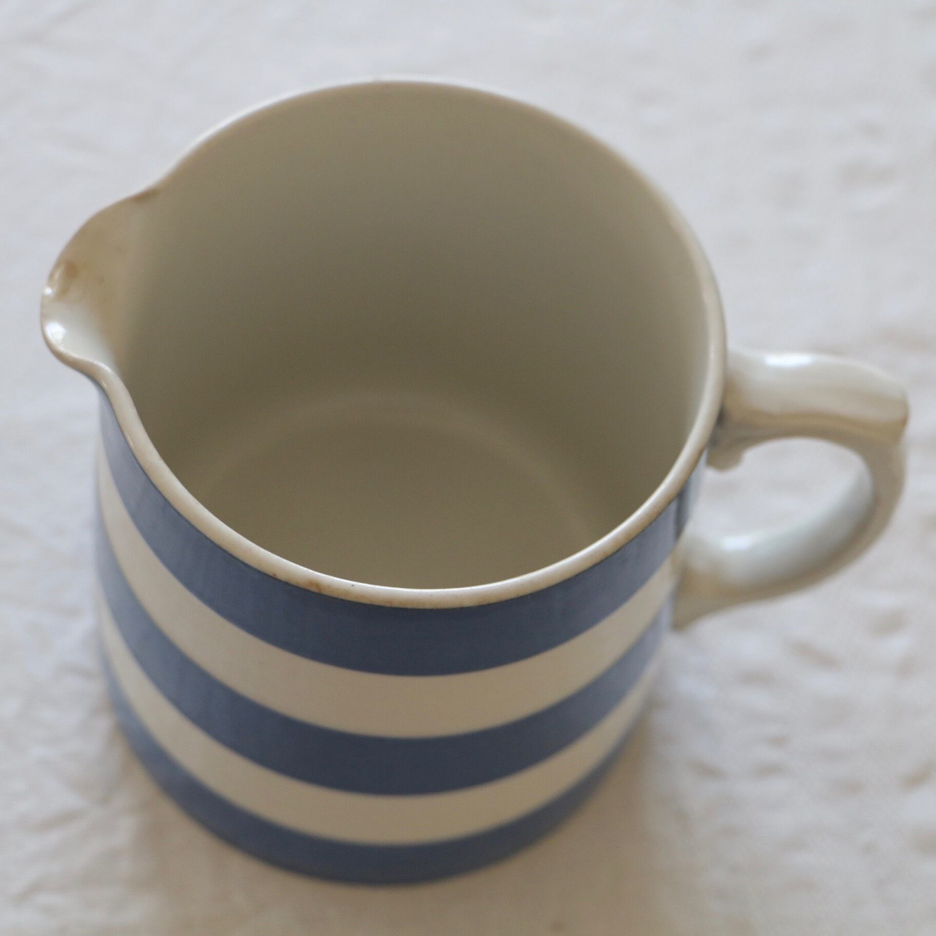 T.G.GREEN CORNISH のピッチャー。爽やかストライプはキッチンのアクセントにもってこいですね!注ぎ口のところにカケがあるので、お安くしてあります。世界中にファンが多く、年々相場が上がって来ています。