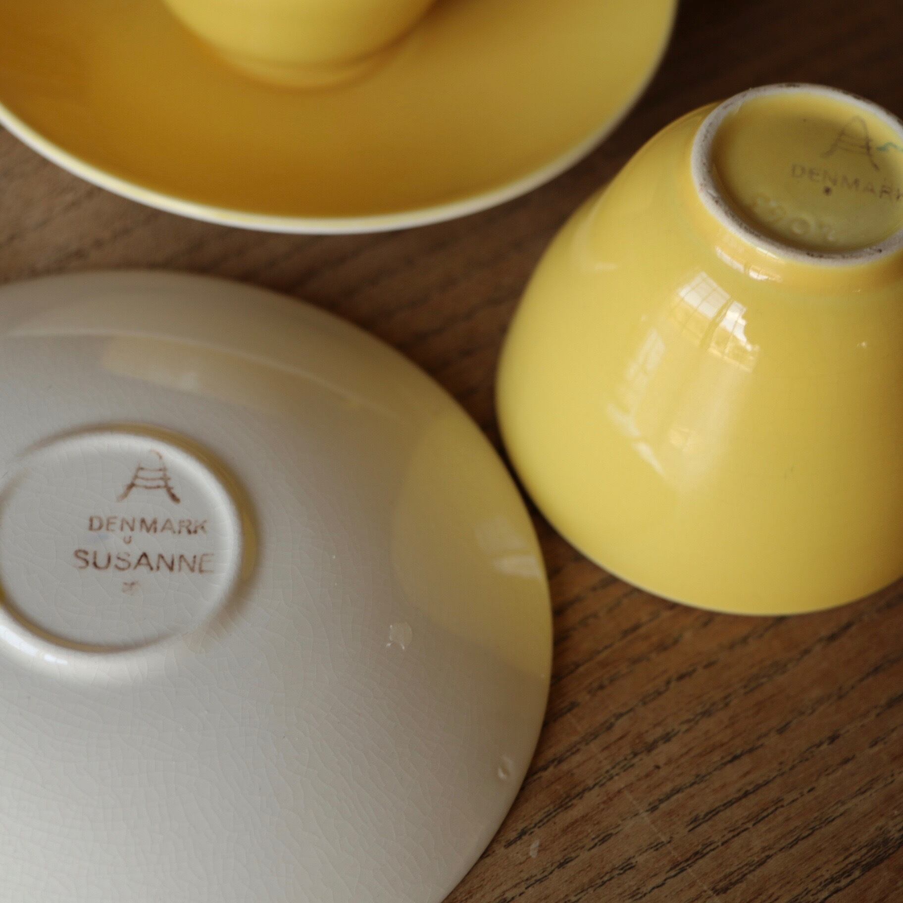 SUSANNEと書かれた黄色のデミタスカップ&ソーサー。